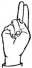 На ћирилици написано МИЊА ГАЋЕ састоји се из 8 слова [?]. Исписано ћириличном једноручном азбуком за глувонеме: